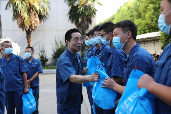 在慰問現(xiàn)場(chǎng),王強(qiáng)董事長(zhǎng)指出,今天是中伏的第十一天,也是整個(gè)伏天的頂峰。當(dāng)前蚌埠市的疫情仍存在小幅擴(kuò)散風(fēng)險(xiǎn),全體職工在嚴(yán)格落實(shí)公司防控制度的同時(shí),用辛勤的勞動(dòng)保障了千家萬戶的用水通暢、無后顧之憂,值得褒揚(yáng)。