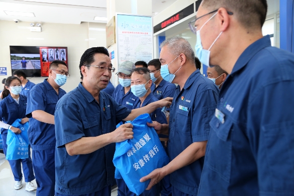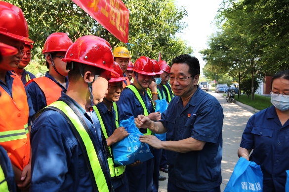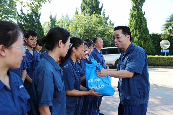王強(qiáng)董事長(zhǎng)每到一處,代表公司向大家的辛苦付出表示由衷的感謝和誠(chéng)摯的慰問,對(duì)職工們無懼高溫炙烤、踏實(shí)勤懇工作的精神道出充分肯定,并叮囑大家在做好安全生產(chǎn)、迎峰度夏工作的同時(shí)要注重自身的安全健康,注意做好高溫下工作的防暑降溫措施。