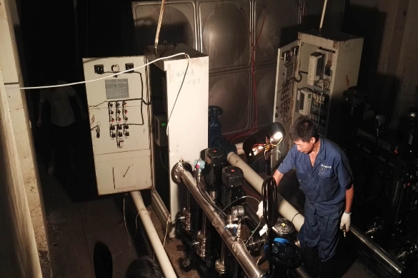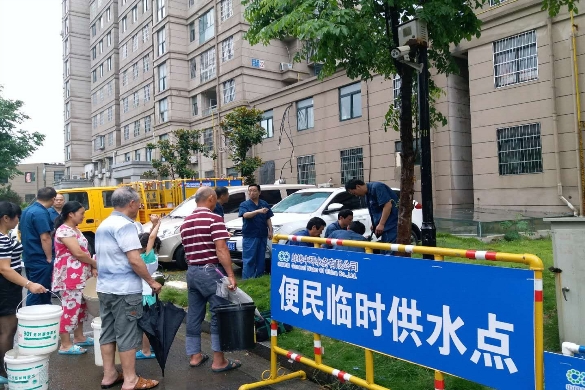 二是迅速反應(yīng),齊心協(xié)力。險情發(fā)生后,公司迅速成立應(yīng)急指揮領(lǐng)導(dǎo)小組,啟動應(yīng)急預(yù)案,從黑虎山水廠安全運行、客戶服務(wù)、內(nèi)部管理等各方面全面部署、多措并舉。公司主要領(lǐng)導(dǎo)趕赴現(xiàn)場指導(dǎo)防汛及搶險工作;各部門迅速反應(yīng)、積極應(yīng)對、主動作為、通力合作,全面開展二次供水泵房防汛排澇應(yīng)急搶險工作。為確保水質(zhì)安全,公司要求一旦泵房積水排空,搶修人員立即對損壞的二次供水設(shè)施進(jìn)行維修更換,并對蓄水池重新進(jìn)行清洗消毒。同時為解決高層居民用戶無水可用的難題,主動為居民免費設(shè)置臨時供水點。兩次暴雨后經(jīng)過連續(xù)搶修先共計恢復(fù)43座泵房設(shè)備運行。