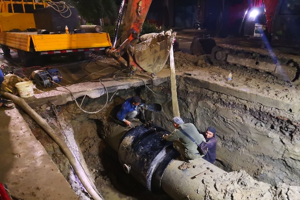 國慶節(jié)期間,管線所共計(jì)搶修孫郢村DN100mm、新淮路珠城路DN300mm、中糧大道與大慶三路向南DN800mm、湯和路與勝利路東北角DN100mm、張公山六村624棟旁DN100mm、長淮衛(wèi)鎮(zhèn)幸福村DN150mm、淮河路新東安酒店對(duì)面路南側(cè)DN300mm大口徑管道爆管及漏水搶修7處;數(shù)字化城管信息任務(wù)17處;消防栓損壞及漏水13處;客服維修80起。 進(jìn)入四季度,為圓滿完成年度生產(chǎn)經(jīng)營任務(wù)目標(biāo),認(rèn)真貫徹落實(shí)“不忘初心、牢記使命”主題教育“守初心、擔(dān)使命,找差距、抓落實(shí)”的總要求,公司各施工部門干事創(chuàng)業(yè)敢擔(dān)當(dāng),主動(dòng)放棄節(jié)假日休息時(shí)間,緊鑼密鼓開展工程施工作業(yè)。10月1日,工程二處對(duì)中環(huán)線(鮑家溝段)DN600mm新型球墨鑄鐵管實(shí)施長約300m的拖管作業(yè),由于氣象預(yù)報(bào)5日有降雨,為避免拖管時(shí)發(fā)生塌方的危險(xiǎn),工程二處連天加夜開展拖管施工。10月4日夜間氣溫驟降,露天施工明顯感覺到寒冷,工程二處毫不畏懼、堅(jiān)守崗位,當(dāng)晚22時(shí),公司黨委副書記、總經(jīng)理徐波,總經(jīng)理助理錢然前往現(xiàn)場(chǎng)檢查指導(dǎo)施工作業(yè),對(duì)施工現(xiàn)場(chǎng)安全防范措施、生產(chǎn)設(shè)備運(yùn)行等進(jìn)行了重點(diǎn)檢查。功夫不負(fù)苦心人,工程二處于5日凌晨2:40,雨水到來前完成拖管作業(yè),未發(fā)生塌方安全事故,隨后幾日對(duì)該段中環(huán)線管道開展試壓工作,10月8日完成試壓,符合國家標(biāo)準(zhǔn),該段中環(huán)線管道安裝任務(wù)圓滿完成。