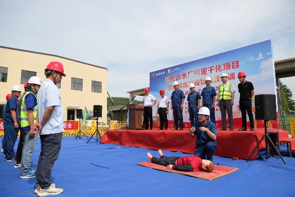 今年6月是全國(guó)第23個(gè)安全生產(chǎn)月,主題是“人人講安全、個(gè)個(gè)會(huì)應(yīng)急——暢通生命通道”。按照公司統(tǒng)一部署,各單位、部門有序開展一系列“安全生產(chǎn)月”活動(dòng)。 6月7日,黑虎山水廠污泥干化項(xiàng)目部開展消防演練及現(xiàn)場(chǎng)急救培訓(xùn)活動(dòng)。公司黨委副書記、總經(jīng)理徐波,黨委委員、副總經(jīng)理蔣林出席本次活動(dòng),黑虎山水廠污泥干化項(xiàng)目部、生產(chǎn)技術(shù)部、行政部、基建部、施工單位、監(jiān)理單位等相關(guān)人員共計(jì)47人參加演練。