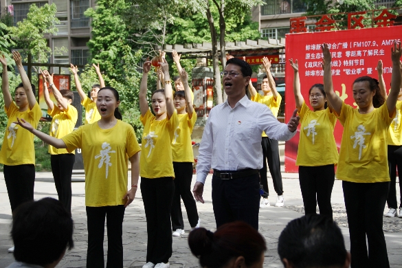為弘揚(yáng)中華優(yōu)秀傳統(tǒng)文化,推進(jìn)社會(huì)主義核心價(jià)值體系建設(shè),提升公民思想道德水平,大力倡導(dǎo)“身邊人講身邊事、身邊人講自己事、身邊事教身邊人”的良好社會(huì)氛圍。上午8時(shí)50分,在直播開(kāi)始前組織了一場(chǎng)蚌埠市道德講堂“敬業(yè)季”活動(dòng),活動(dòng)分為講故事、學(xué)模范、頌經(jīng)典、唱歌曲、送吉祥等環(huán)節(jié),形式多樣、內(nèi)容豐富。2019年是新中國(guó)70周歲華誕,開(kāi)場(chǎng)的舞蹈串燒及快閃《我和我的祖國(guó)》青春洋溢、積極向上,表達(dá)了蚌埠中環(huán)水務(wù)員工們對(duì)黨和祖國(guó)的熱愛(ài)和對(duì)家鄉(xiāng)的贊美;講故事環(huán)節(jié)中,金域名城社區(qū)的宦美玲老師深情講述了愛(ài)崗敬業(yè)蚌埠好人羅輝的先進(jìn)事跡,羅輝作為蚌埠中環(huán)水務(wù)聽(tīng)漏工,20年如一日地為地下水管“把脈”,展現(xiàn)了供水人為保障城市安全優(yōu)質(zhì)供水無(wú)私奉獻(xiàn)的精神和始終如一的信念;在端午節(jié)到來(lái)之際,中環(huán)水務(wù)青年志愿者楊婷、呂爽朗誦的《白話端午》介紹了端午節(jié)的由來(lái)、傳說(shuō)和習(xí)俗,吟誦了屈原愛(ài)國(guó)主義詩(shī)歌,弘揚(yáng)了愛(ài)國(guó)主義精神;李曉燕老師演唱的《共圓中國(guó)夢(mèng)》,清新質(zhì)樸的歌詞和鏗鏘有力的伴奏表達(dá)了深厚熾熱的愛(ài)國(guó)之情。