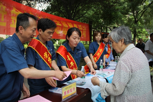 ? 5月28日一大早,公司黑虎山水廠黨支部、營(yíng)業(yè)所黨支部、管線所黨支部、誠(chéng)信公司黨支部及機(jī)關(guān)一支部、二支部的黨員、青年志愿者及干部職工們?cè)诮鹩蛎切^(qū)開(kāi)展便民服務(wù)活動(dòng),公司黨委副書(shū)記、總經(jīng)理徐波,總經(jīng)理助理張自強(qiáng)參加活動(dòng)。現(xiàn)場(chǎng)搭建咨詢服務(wù)臺(tái),發(fā)放供水知識(shí)宣傳冊(cè),為廣大市民提供供水設(shè)施義務(wù)維修服務(wù)和咨詢答疑,聽(tīng)取廣大用戶對(duì)供水服務(wù)工作的意見(jiàn)和建議;宣傳公司近年來(lái)在加快城市供水基礎(chǔ)設(shè)施建設(shè),不斷提升供水保障能力,奮力實(shí)現(xiàn)城鄉(xiāng)一體化、區(qū)域一體化、供排一體化、廠網(wǎng)一體化等方面所做的工作;并向居民用戶宣傳節(jié)約用水、保護(hù)水資源的知識(shí)。本期《政風(fēng)行風(fēng)熱線走進(jìn)社區(qū)》活動(dòng)由蚌埠中環(huán)水務(wù)具體承辦,秉承為百姓辦實(shí)事的宗旨,走進(jìn)社區(qū)聽(tīng)取民意,零距離了解民生,展示蚌埠中環(huán)水務(wù)優(yōu)質(zhì)供水服務(wù)形象。
