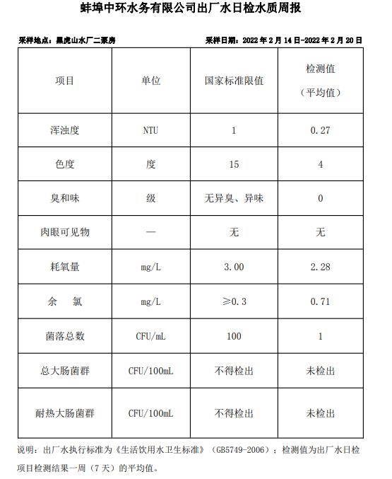 出廠水日檢水質(zhì)周報(2022年2月14日-2022年2月20日)
