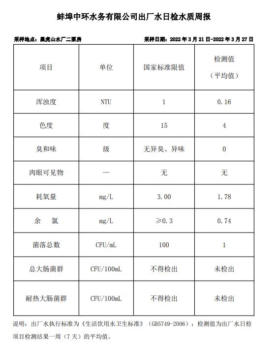 出廠水日檢水質(zhì)周報(bào)(2022年3月21日-2022年3月27日)