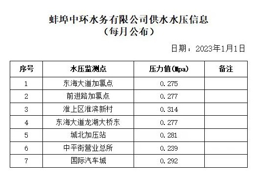 2023年1月1日水壓信息