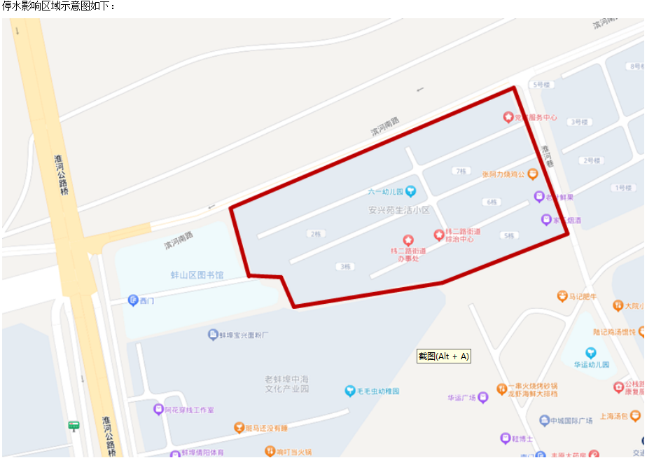 停水區(qū)域:安興苑小區(qū)。