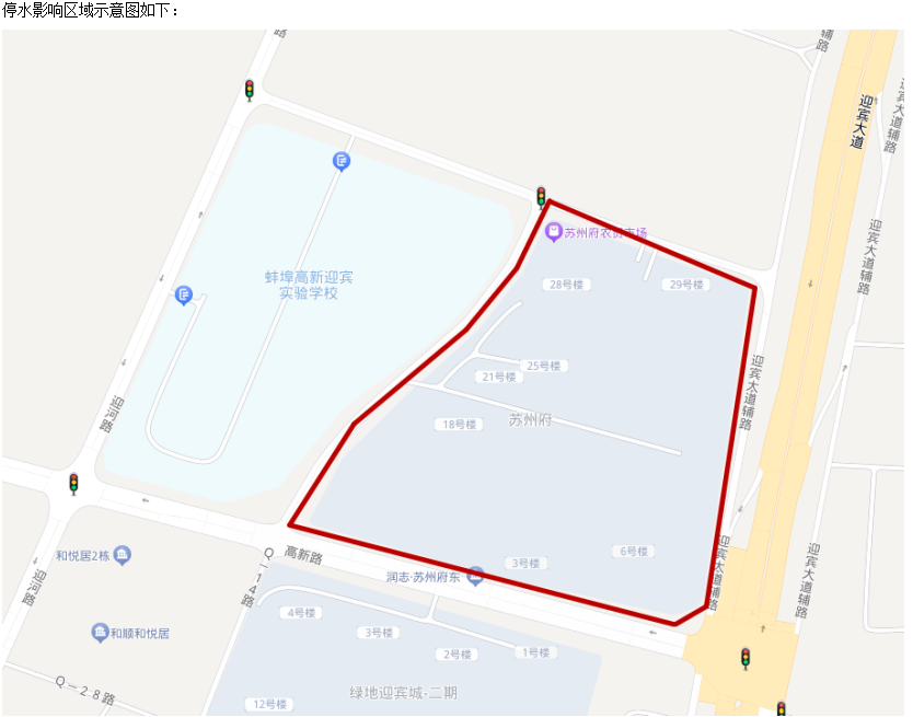 停水區(qū)域:蘇州府一期5層-11層用戶。