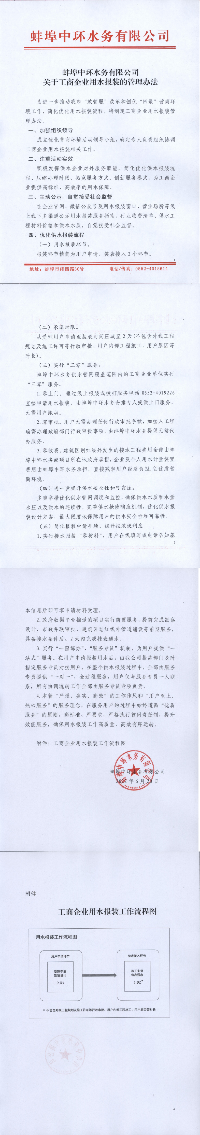 蚌埠中環(huán)水務(wù)關(guān)于工商企業(yè)用水報(bào)裝的管理辦法