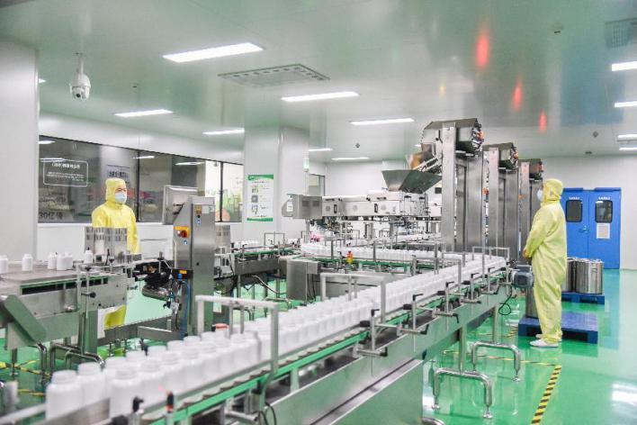 據(jù)了解,園區(qū)的照明、制冷,生產(chǎn)用電、用水等優(yōu)先依靠自建的2.3兆瓦屋頂光伏電站。每年園區(qū)自發(fā)電量為315萬度,可減少煤炭消耗2003噸,相當(dāng)于減少二氧化碳排放5248噸。2024年,園區(qū)的二氧化碳排放強(qiáng)度為0.03噸二氧化碳當(dāng)量/萬元,遠(yuǎn)低于全球平均水平。 在降低能耗上下狠功夫的同時(shí),園區(qū)在推動(dòng)資源循環(huán)利用上頻出實(shí)招,一方面委托具備資質(zhì)的物資回收公司將生產(chǎn)過程原輔料包裝材料全部回收,使工業(yè)固體廢物綜合利用率達(dá)到100%,另一方面將生產(chǎn)過程中產(chǎn)生的廢水收集到廠區(qū)污水站深度處理后,用于灌溉園區(qū)的花草樹木,讓資源在循環(huán)利用中發(fā)揮最大效益。 當(dāng)前,園區(qū)已經(jīng)全面通過ISO9001、ISO14001、ISO22000、ISO45001、ISO50001國際體系認(rèn)證,在食品安全、產(chǎn)品質(zhì)量、環(huán)境保護(hù)等領(lǐng)域均達(dá)到國內(nèi)領(lǐng)先水平。 GMP車間里藏著“綠色密碼” 洗手、消毒、換衣、除塵……每一位進(jìn)入園區(qū)生產(chǎn)車間的人員都要經(jīng)過這一系列繁瑣的程序。反光的地面、不著一絲污跡的角落、自動(dòng)化運(yùn)轉(zhuǎn)的精密儀器、燈火通明的車間,這里看上去更像是一間偌大的、枕戈待旦的手術(shù)室。